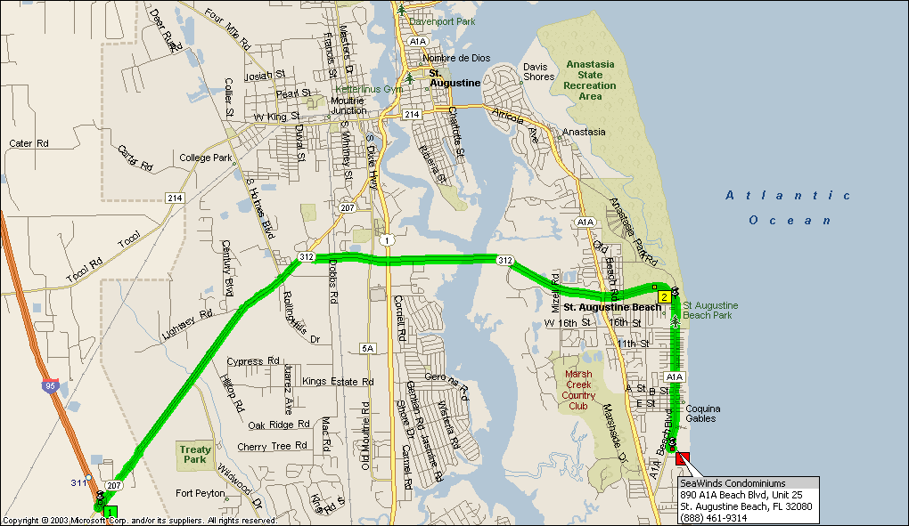 Travel US 1 to Route 312 in South St. Augustine. Take 312 East 4.5